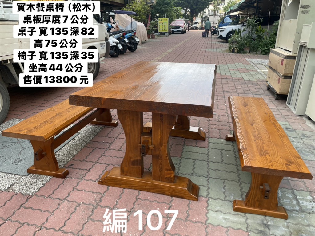 實木餐桌椅(松木) 桌板厚度7公分 桌子 寬135深82高75公分 椅子寬135深35坐高44公分
