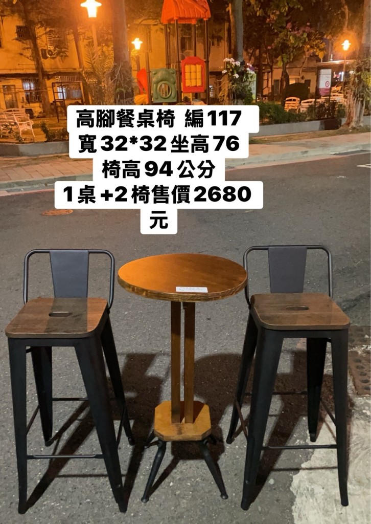 (已售出)高腳餐桌椅 編117 寬32*32坐高76椅高94 1桌+2椅