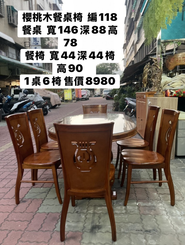 櫻桃木餐桌椅 編118 餐桌 寬146深88高78 餐椅 寬44深44椅高90 1桌6椅