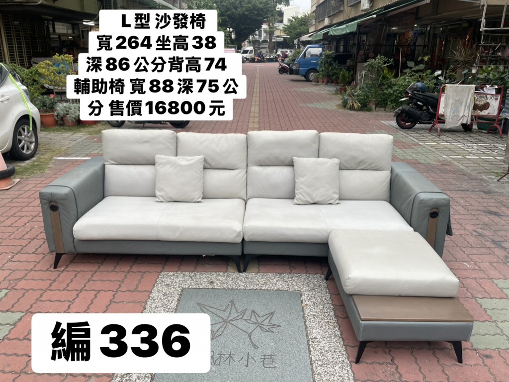 L型 布沙發椅 寬264坐高38深86公分 背高74 輔助椅 寬88深75公分