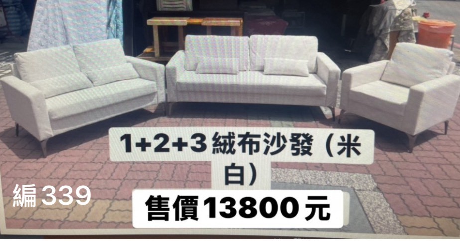 (全新)1+2+3絨布沙發(米白)