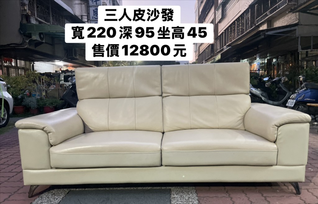 三人皮沙發 編357 寬220深95坐高45