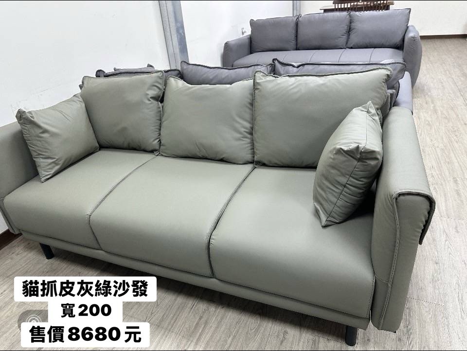 貓抓皮沙發 (灰綠)