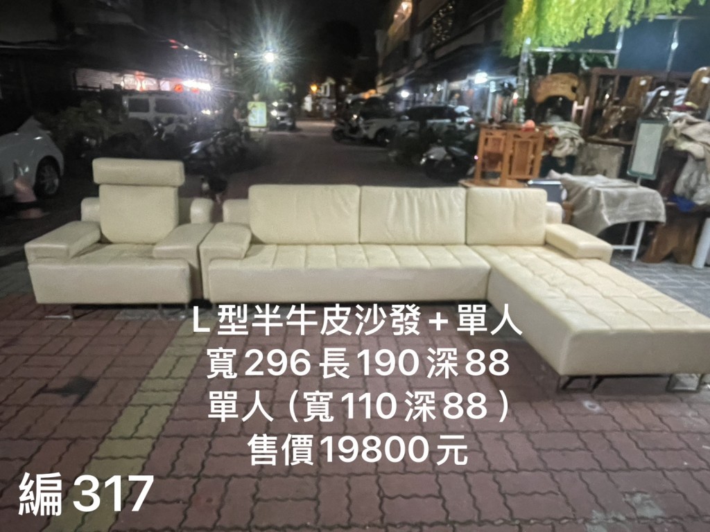 L型辦牛皮沙發+單人 寬296長190深88 單人(寬110深88)