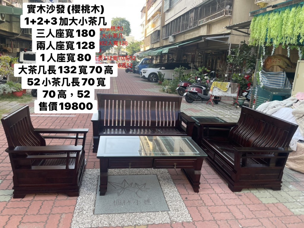 實木沙發(櫻桃木) 1+2+3+大小茶几 3人寬180 2人寬128 1人寬80 大茶几長132寬70高52 小茶几長70寬70高52
