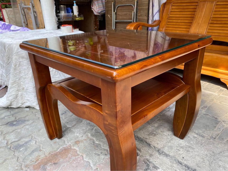 原木客廳邊桌長65寬65高58公分含強化玻璃(售出)
